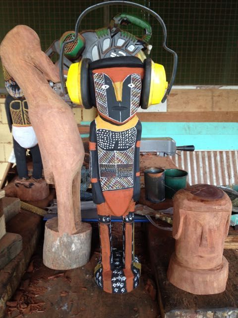 Since leaving school, Arthur has always had work. Past work includes Bathurst Island Housing and CDEP with the Shire Council. Since working with Ngaruwanajirri Arthur enjoys working each day doing carving. He takes great pride making up his own ochre colours and his paintwork is beautifully applied. Carved heads and delightful birds are his subject matter as well as working with the other carvers to create large tutini (poles). Arthur helps in the maintenance and upkeep of the centre.
