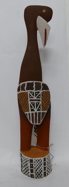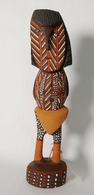 David's carving of Purukupali (as part of a collaborative group of carvings) with Gordon Pupangamirri, Barry Kantilla, and Graham Tipungwuti was selected for the Wynne Prize in 2022. This was an individual and beautifully painted figure. He currently enjoys carving and painting ironwood birds and unusual Tiwi figurative heads and delightful male and female figures. David’s work is held in the Charles Darwin University Art Collection and Private collections.