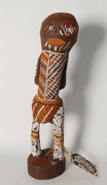 Graham Tipungwuti has made furniture for Tiwi homes and businesses and enjoys working with wood. Now preferring to carve timber (ironwood) his sculptures and other art works have been shown at several pivotal Ngaruwanajirri shows since he joined.