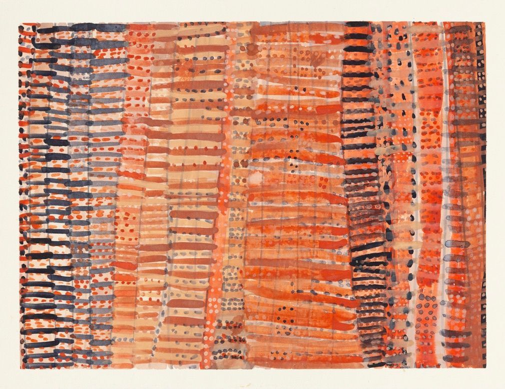 Lorna Kantilla has been working at the Ngaruwanajirri Art Centre, Bathurst Island, since it was established in 1994. Lorna works with natural ochres on paper and canvas, and batik on silk using Drimarine K and Naphthol dyes. Her paintings are lively and spontaneous with flowing strokes and often using just lines, dots or circular patterns in paintings and painting wax onto silk.